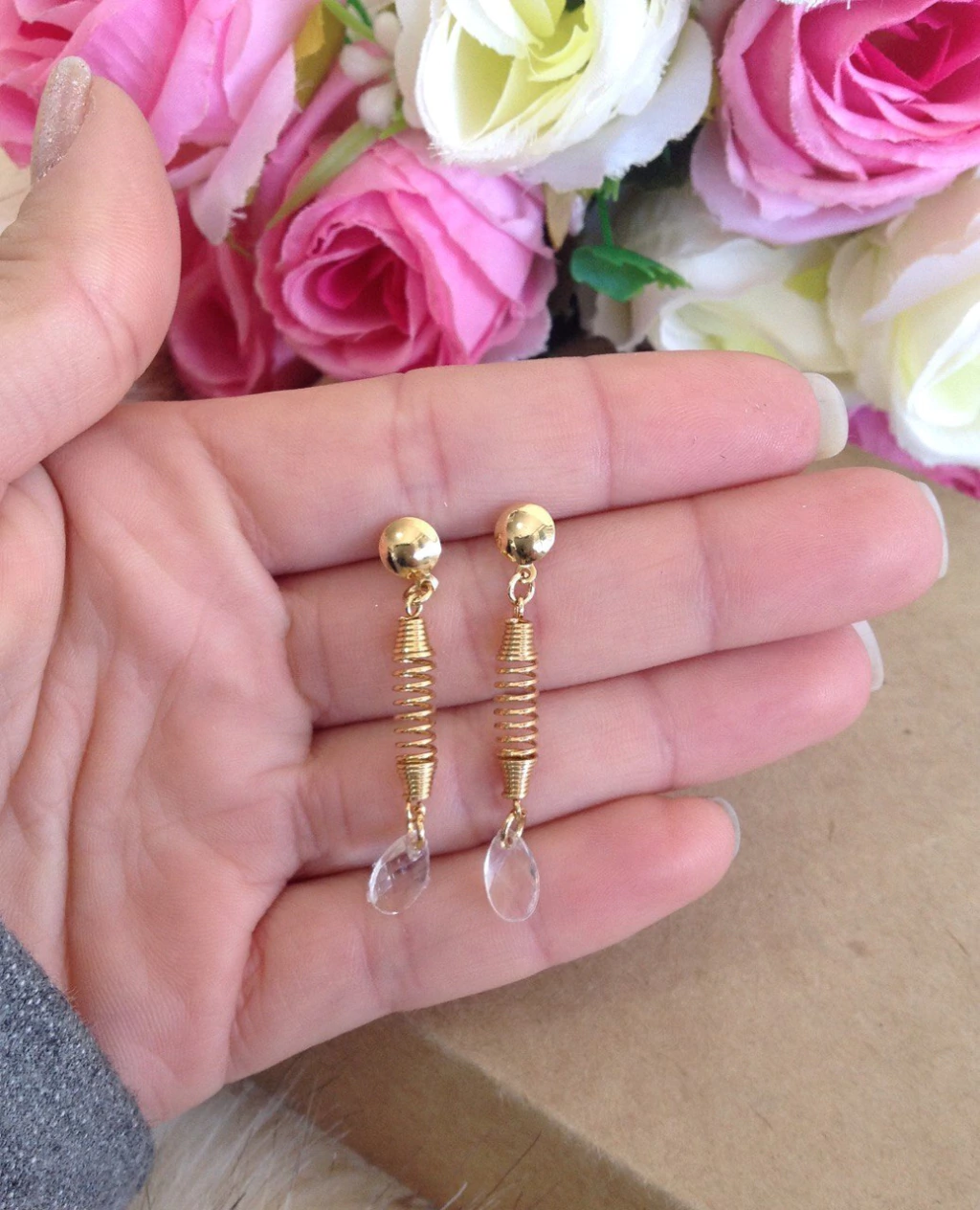 BRINCO PENDULO MOLA COM CRISTAL OVAL NA PONTA